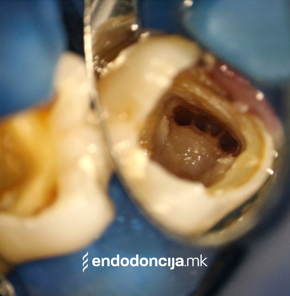 Под микроскоп, нашите специјализирани стоматолози ја гледаат внатрешноста на забот и системот на коренскиот канал со најдобро осветлување и многу зголемено.